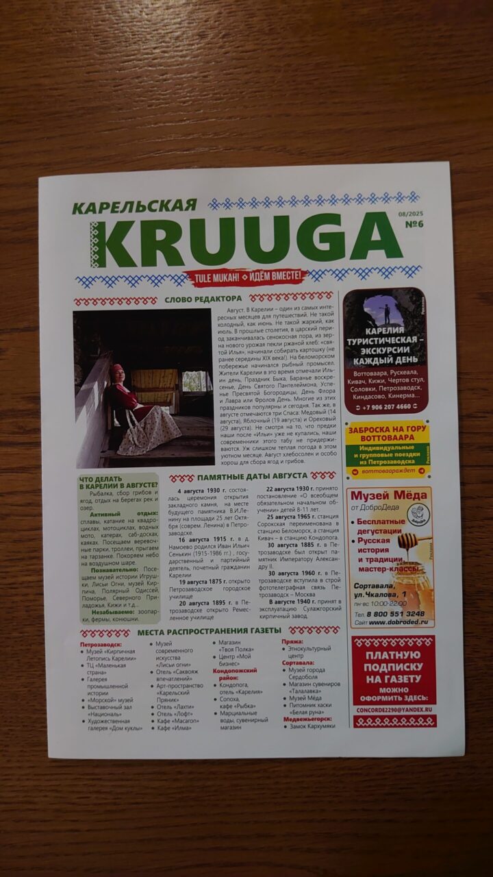 Мы держим в руках уже 6-й выпуск газеты «Карельская KRUUGA», а значит можно с полной уверенностью сказать, что издание состоялось, что оно нашло дорогу к своим читателям и продолжает притягивать к себе всё новую аудиторию. Мы уверены, что на это издание будет организована подписка, оно появится в библиотеках и по нему будут судить об истории Карелии спустя много лет.