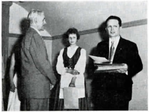 На фото из «Karjalan Heimo»: слева — Оскари Кивинен, справа — председатель Карельского просветительского общества Борис Карппела и Сандра Максинен — дочь известной рунопевицы Мари Ремшу, вручают Оскари Кивинену медаль защитника Карелии.