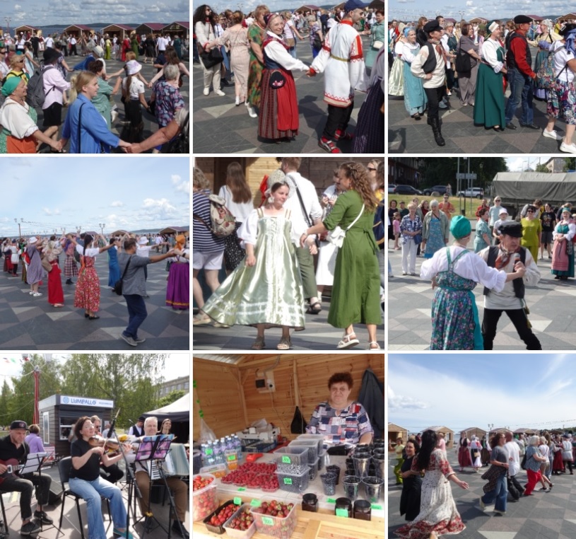 Сегодняшний Международный день коренных народов мира был отмечен в Петрозаводске традиционной карельской круугой на набережной Онежского озера, на которой вместе танцевали и жители города, и его гости, и карелы в национальных одеждах, и другие объединения, например, ингерманландцы и литовцы, которых можно было узнать по их традиционным праздничным нарядам. В этот раз круугой управлял руководитель фольклорного театра «Горница» В.Мальми Борис Шустов. А живая музыка звучала в исполнении фолк-группы «Мука». После крууги участники праздника провели несколько традиционных карельских танцев-игр, довольно таки сложных для запоминания. Но все пришедшие на праздник легко справились с заданием и исполнили эти игры так, как будто бы тренировались уже очень долго. На танцевальной площадке царили общая радость и неподдельный интерес к национальной карельской культуре. А в расположенных поблизости ларьках можно было купить свежие карельские лесные и садовые ягоды — клубнику, чернику, морошку, малину, ежевику и отведать Карелию на вкус.