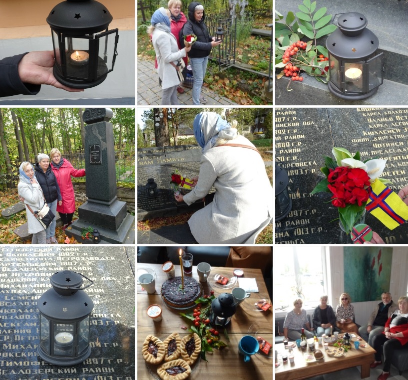 Сегодня в День осеннего равноденствия группа активистов почтила память финно-угорских предков, зажигая в их честь свечи на Зарецком кладбище Петрозаводска — самом старом кладбище города. Здесь похоронены и никому неизвестные рабочие Александровского завода — выходцы из карельских сёл, расположенных около нашего города. Здесь есть и могила самого известного городского купца и благотворителя Марка Пименова, вепса по национальности, дававшего деньги на строительство многих объектов в городе, в том числе и на сам Крестовоздвиженский храм, около которого и расположена его могила. Здесь есть и мемориал пострадавшим во время репрессий 1930-х годов, среди которых большинство карелов, вепсов и финнов — от простых рабочих и колхозников до руководителей, депутатов и министров. И именно это кладбище Петрозаводска, как ни какое другое хранит память финно-угорских предков на протяжении многих поколений и веков.