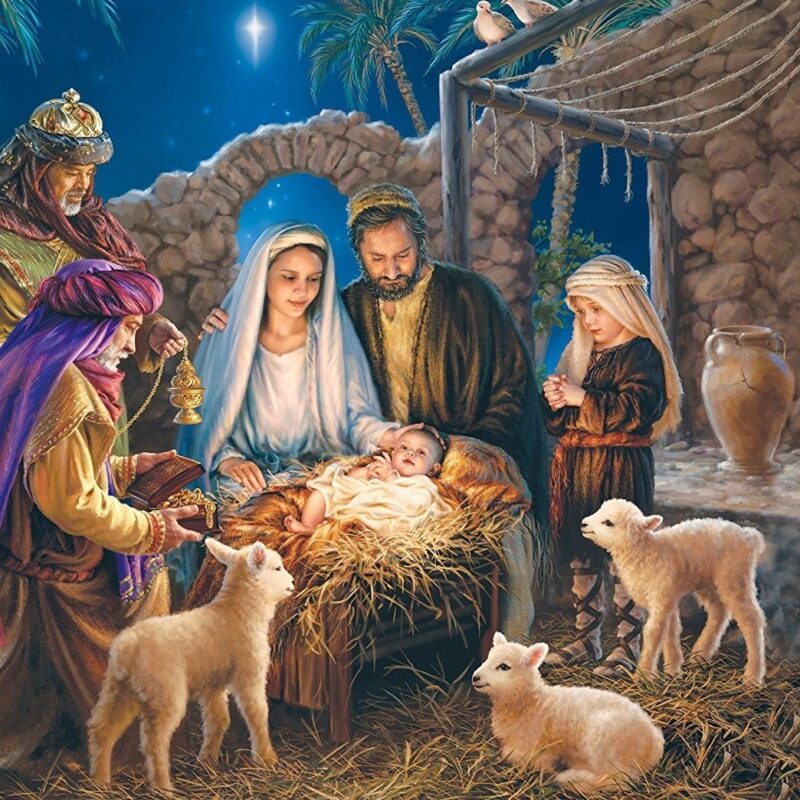 Hüö mendih taloih i nähtih lapsi da Hänen muamah Marija. Hüö langettih polvilleh da kumardettihes lapsele. Sit hüö avattih omat sundugat da annettih lapsele kallehet lahjat: kuldua, luadanua da miirua.