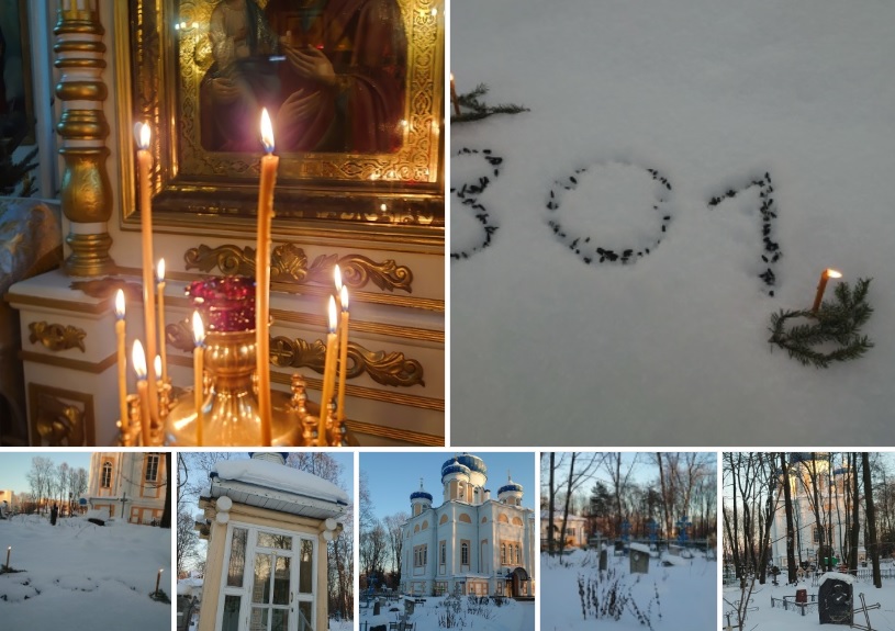 В тихой и такой уютной церкви мы поставили свечку за всех, кто любил наш город и работал для того, чтобы он развивался, становился всё краше и удобнее для своих жителей и гостей. Мы прошлись по кладбищу, оглянули его, обрадовались за могилы, которые содержатся в порядке, погрустили над заброшенными могилами, среди которых есть даже те, где лежат известные люди, принесшие много пользы городу, и огорчились от безликой и холодной мемориальной площадки, посвящённой первому народному художнику КФССР Попову, стоящей на месте его исчезнувшей исторической могилы, но теперь без оградки и с закопанным в сугробах камнем. Теперь даже соседние старинные могилы с оградками выглядят намного красивее, чем она.